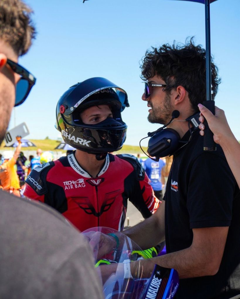 Le difficoltà sono iniziate già nelle prove libere del venerdì, con diversi problemi tecnici che hanno condizionato il lavoro in pista e il feeling con la moto. In Q1, nonostante i limiti ancora presenti, Marco è riuscito a chiudere in 25ª posizione, portando a casa un tempo utile per la griglia. La Q2 sarebbe stata l’occasione per migliorare e capire se le modifiche apportate avessero funzionato, ma la pioggia caduta proprio prima della sessione ha reso la pista inutilizzabile: con la Q1 disputata sull’asciutto, nessuno è sceso in pista.